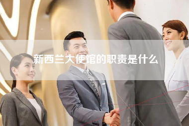 新西兰大使馆的职责包括:负责新西兰政府与外国政府之间的外交关系,定期向新西兰政府报告和评论有关国际关系的情况,为新西兰政府采取有关国际事务的政策提供意见,促进新西兰与外国政府之间的经济合作,促进新西兰与其他国家的科学技术交流,及时了解外国政府的政策发展,为新西兰政府和企业提供外事及商务服务,为新西兰公民提供国际服务,以及派遣政府代表团和官方团访问以及其他任务等。